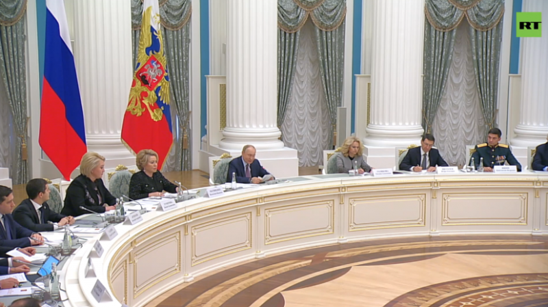 Президент России Владимир Путин принял участие в заседании Совета по реализации государственной демографической и семейной политики. RT вёл прямую трансляцию.